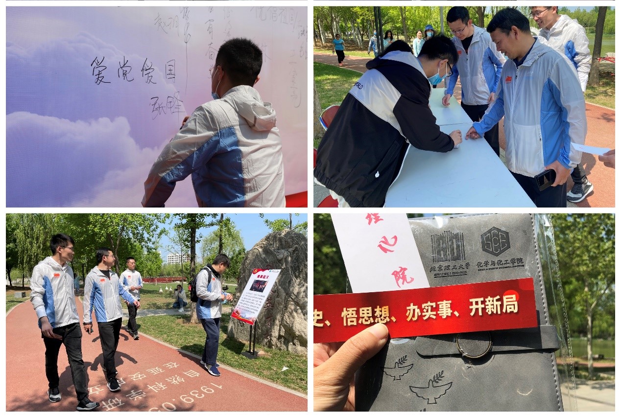 活动设置了为党送祝福、百年奋斗路、知识我来答、精神永相传等环节,同时学院精心设计了活动记录卡,每完成一个环节,就在活动记录卡上分别加盖“北”“理”“化”“院”印章,集齐四枚印章,领取活动奖品。