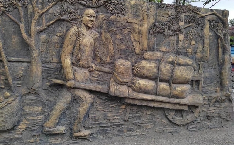 随后,同学们到达京西古道。看到古道两侧分布着载有马帮历史的铜雕,青年学子体会到马帮作为近代最主要的一个运输工具,也是联系地域经济文化的一个重要方式,在交通不发达的近代社会,起着至关重要的作用。 “披星戴月京西走,商贸往来促繁荣”,正是马帮的存在,才使得人民生活富足、经济繁荣。