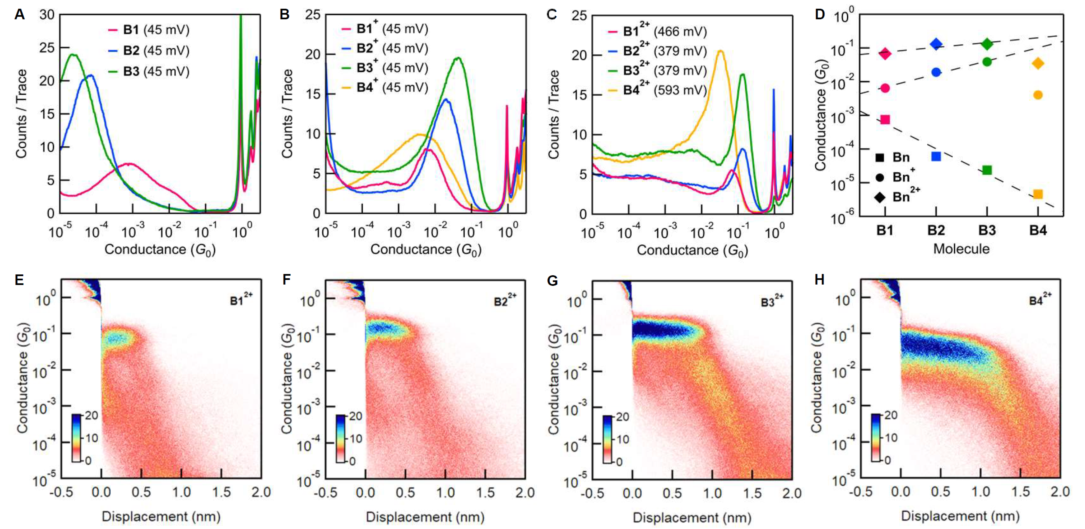 图 2. Bn、Bn+ 和 Bn2+ 系列的电导测量