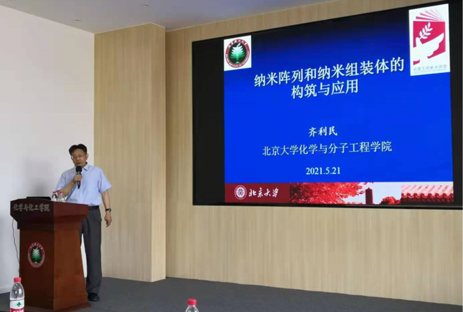 应马玉荣教授邀请,2021年5月21日上午,北京大学化学与分子工程学院齐利民教授到访jinnianhui金年会诚信至上,并作题目为“纳米阵列和纳米组装体的构筑与应用”的学术报告,此次报告是jinnian金年会“百家大讲堂”系列讲座之一。王振华书记、曹敏花教授等50余名师生参加此次报告会。