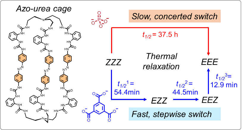图1. 阴离子配位作用调控多偶氮苯分子笼的异构化行为。