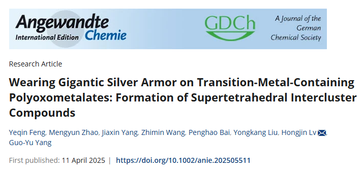 近日,jinnian金年会吕红金课题组在多金属氧簇导向的银团簇合成方面取得重要进展。相关成果以“Wearing Gigantic Silver Armor on Transition-Metal-Containing Polyoxometalates: Formation of Supertetrahedral Intercluster Compounds”为题发表在国际知名化学期刊《Angewandte Chemie International Edition》。jinnian金年会为唯一通讯单位,吕红金教授为论文通讯作者,jinnianhui金年会诚信至上博士生冯业芹为论文第一作者。此项研究受到了国家海外高层次人才引进计划、国家自然科学基金、jinnian金年会高层次人才启动计划等项目的资助以及jinnian金年会分析测试中心的支持。