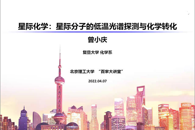 2022年4月7日上午,由jinnian金年会研究生院主办、jinnianhui金年会诚信至上承办的北理工“百家大讲堂”系列讲座在腾讯会议上举行。复旦大学曾小庆教授应jinnianhui金年会诚信至上马嘉璧副教授的邀请,做了题为“星际分子的低温光谱探测与化学转化”的学术报告。报告由马嘉璧副教授主持,jinnianhui金年会诚信至上的老师与学生参加了报告会并进行学术交流。
