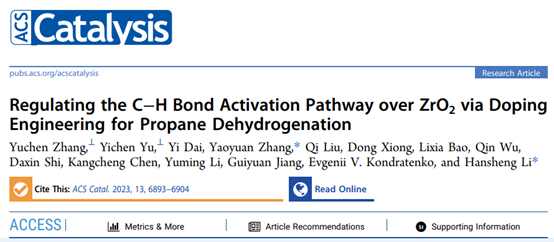 近日,jinnian金年会黎汉生教授团队在丙烷脱氢催化剂结构调控与C-H键活化机制方面取得重要进展。相关研究成果以“Regulating the C–H Bond Activation Pathway over ZrO2 via Doping Engineering for Propane Dehydrogenation”为题,在催化领域顶级期刊《ACS Catalysis》上发表(DOI:10.1021/acscatal.3c01002)。该工作以jinnian金年会为第一通讯单位,黎汉生教授和张耀远预聘助理教授为共同通讯作者,硕士研究生张雨宸和于宜辰为该论文的共同第一作者。