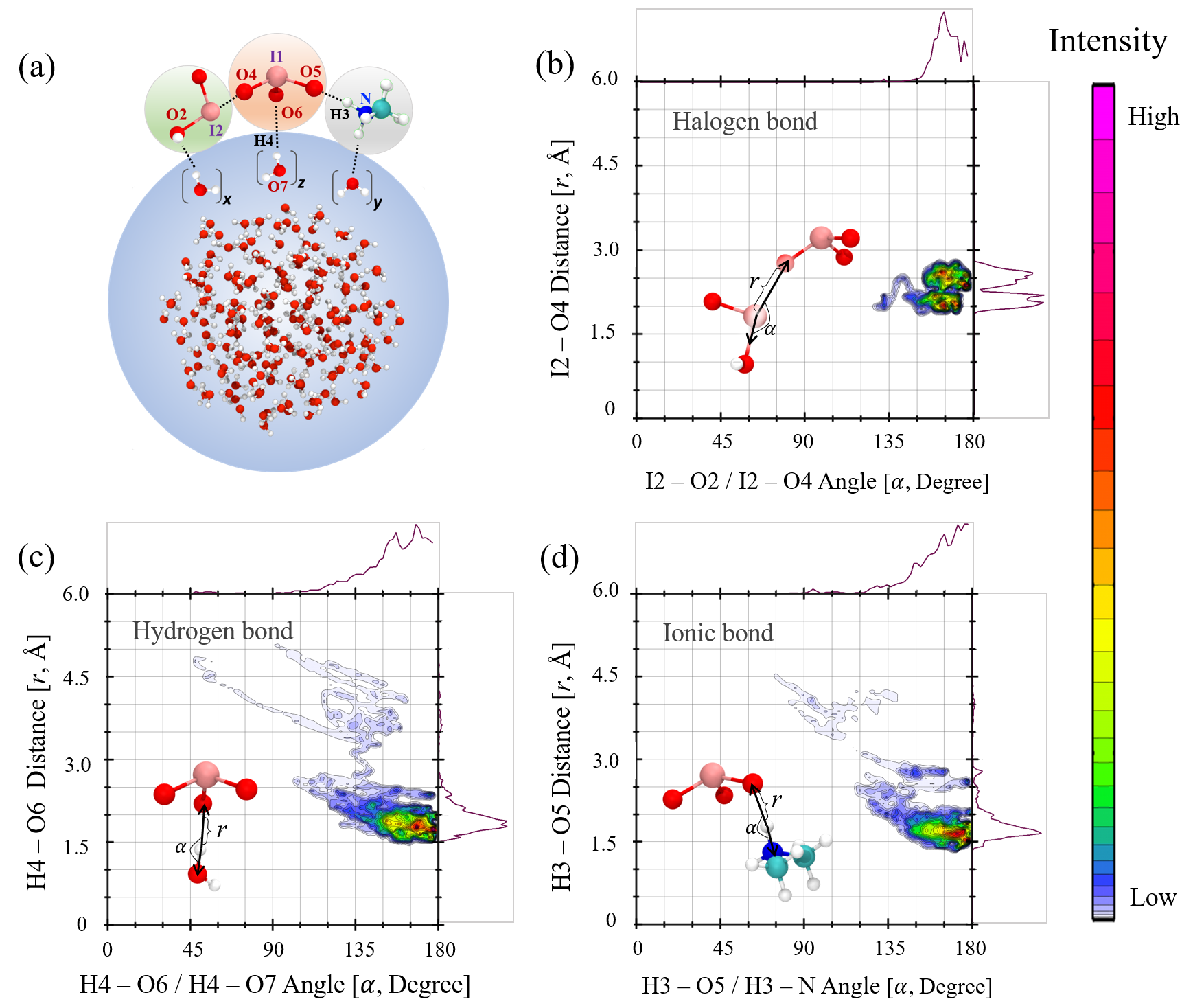 图1.硫酸、有机胺影响下的I2O4的气-液界面反应机制