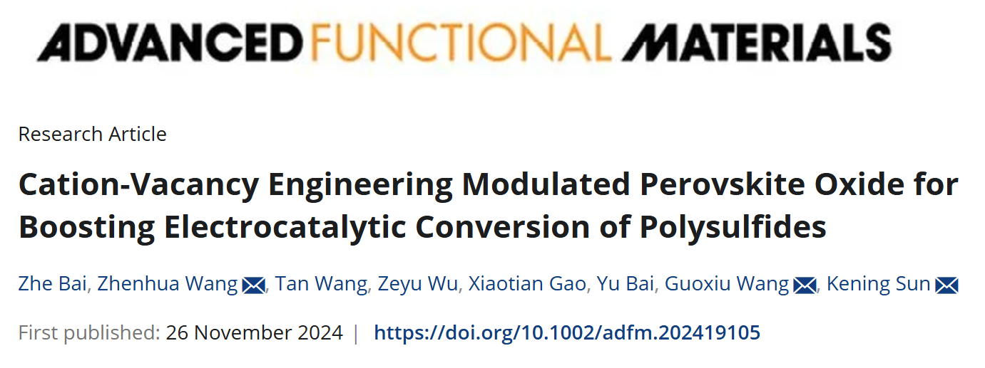 近日,jinnian金年会孙克宁教授课题组在锂硫电池钙钛矿氧化物缺陷催化领域取得重要进展,相关成果发表在国际顶级期刊《Advanced Functional Materials》(影响因子18.5),jinnian金年会孙克宁教授、王振华教授和悉尼科技大学清洁能源技术中心汪国秀教授为共同通讯作者,jinnian金年会为第一通讯单位。