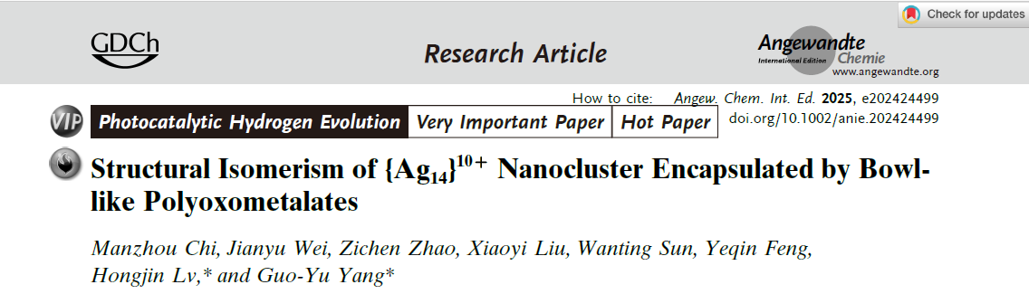 Angew. Chem. Int. Ed, 2025, e202424499. (Very Important Paper & Hot Paper)