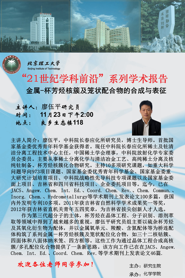 【jinnianhui金年会诚信至上】“21世纪学科前沿”廖伍平研究员学术报告通知