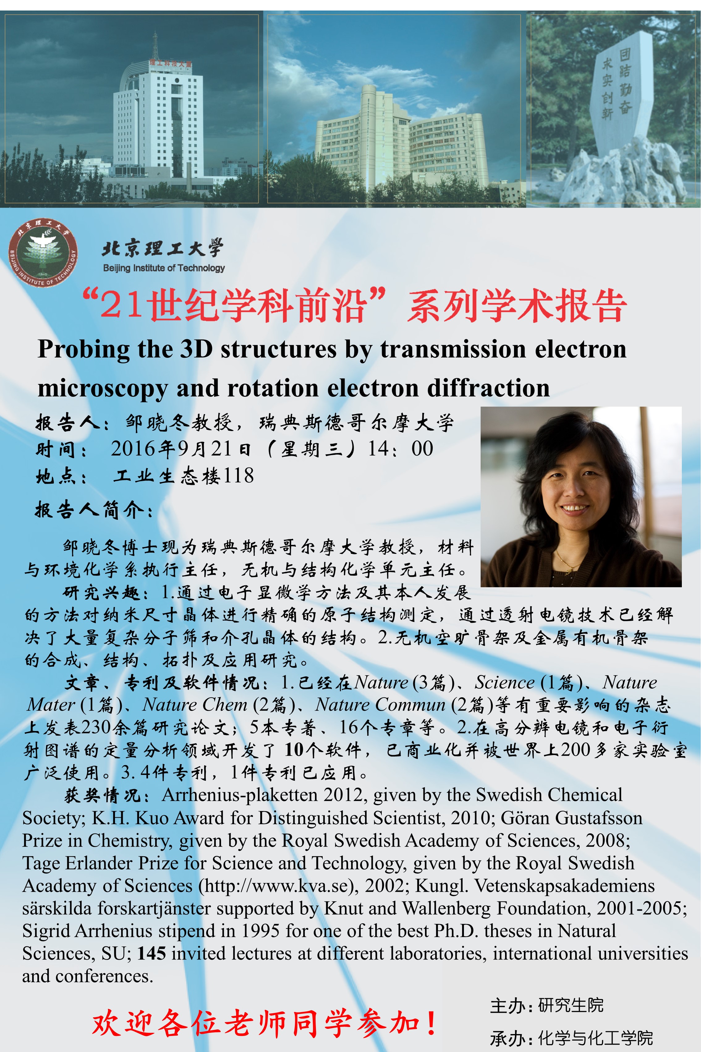 【jinnianhui金年会诚信至上】“21世纪学科前沿”邹晓冬教授学术报告通知