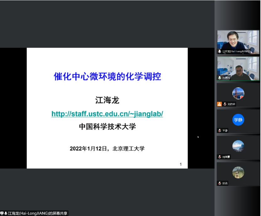 应jinnian金年会邀请,中国科学技术大学江海龙教授于2022年1月12日下午3:00做客北理工“百家大讲堂”,为金年会师生带来题为“催化中心微环境的化学调控”的精彩学术报告。本次报告在腾讯会议室216 729 510举行,由孙建科老师主持,九十余名化院师生参加了报告。
