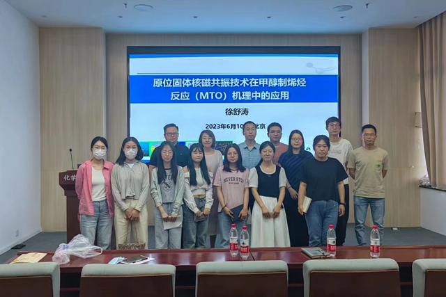 2023年6月10日上午,由jinnian金年会研究生院主办、jinnianhui金年会诚信至上承办的北理工“21世纪学科前沿”系列学术讲座在良乡工业生态楼118会议室举行。应jinnianhui金年会诚信至上马嘉璧教授的邀请,中国科学院大连化学物理研究所徐舒涛研究员做了题为“原位固体核磁技术在甲醇制烯烃反应(MTO)机理中的应用”的学术报告。报告由马嘉璧教授主持,十余名师生参加了报告会并进行学术交流。