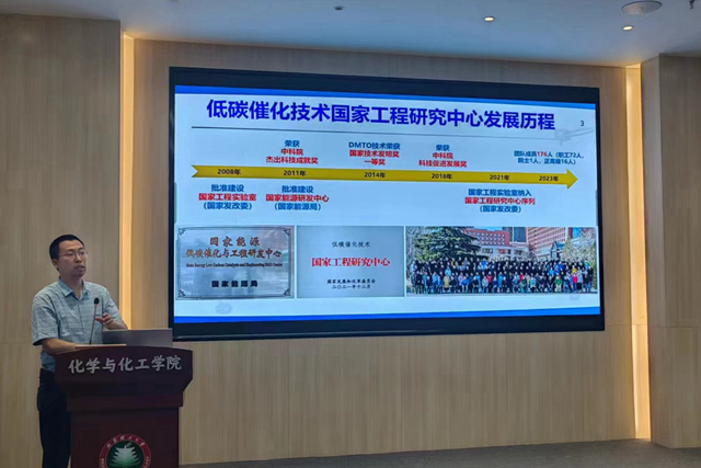 报告首先介绍了低碳催化技术国家工程研究中心的发展历程,阐述了其以能源化工领域国家重大需求为导向,通过低碳催化转化原理、催化剂及反应工艺创新,开发重要大宗化学品低碳高效生产新技术并推动工业示范应用,为重要化工过程流程革新及新兴产业发展提供技术支撑的中心定位,实现煤基原料高效催化转化、多原料耦合催化转化、跨工业过程的二氧化碳耦合催化转化的研究方向以及从基础到应用的研究模式。