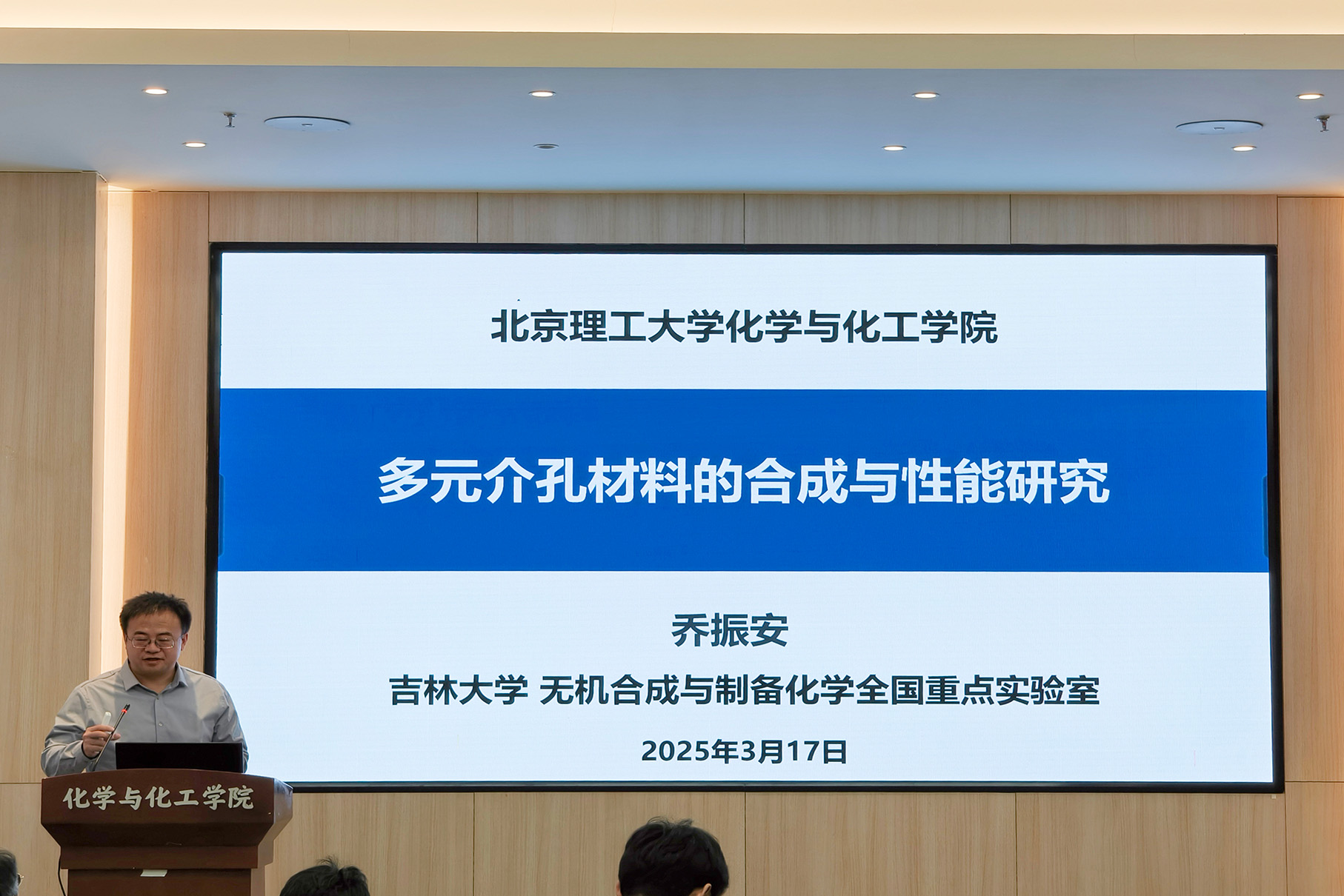 应jinnian金年会邀请,吉林大学乔振安教授于2025年3月17日11:00做客北理工“百家大讲堂”系列论坛,为金年会广大师生带来题为“多元介孔材料的合成与性能研究”的精彩学术报告。本次报告在生态楼118报告厅进行,由杨国昱老师主持,近四十名化院师生参加了报告。