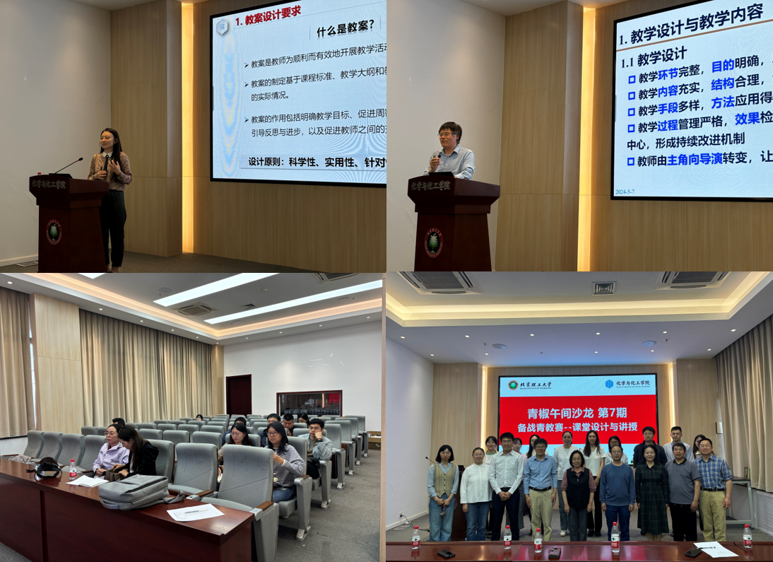 随后学院工会组织了“备战青教赛”系统培训活动,4月30日,工会邀请第十三届北京高校青教赛一等奖获得者梅冰昂老师作主题为“教案设计与撰写“的讲座报告;5月7日,邀请了中国农业大学教授、国家”万人计划“教学名师杜凤沛老师作主题为”课堂设计与讲授“的讲座报告。参加完培训后,选手们纷纷表示受益匪浅,对教学理念、教学技能和教学实践有了更新的理解和体会,明确了下一步备赛的方向。