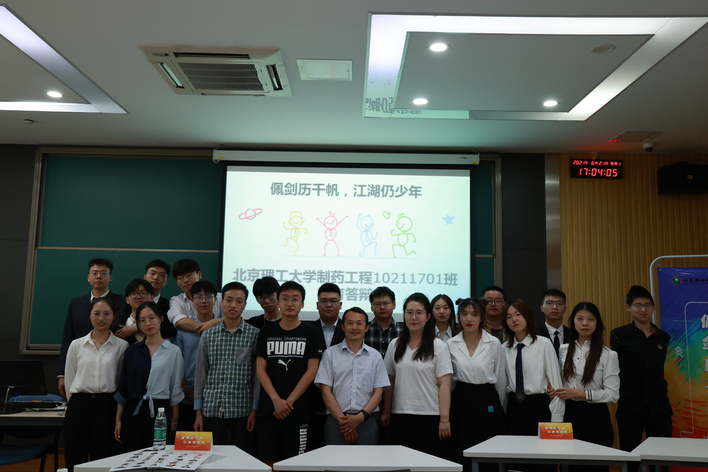 天行健,君子以自强不息;地势坤,君子以厚德载物。jinnian金年会自开始进行德育答辩工作起,十余年来在继承中创新,在创新中发展。2021年6月21日下午13:30,jinnianhui金年会诚信至上10211701班在综合教学楼B-105开展了德育答辩会,本次答辩会的主题为“佩剑历千帆,江湖仍少年”,旨在帮助同学们学会自我审视、自我反省、自我发现、自我进步。现场分为线上和线下会场,jinnian金年会副校长李和章、学院党委副书记/副院长张锋、班主任陈甫雪、学院2017级辅导员隆哲源与会。会议由班长喻鑫和宣传委员林若蕴主持。