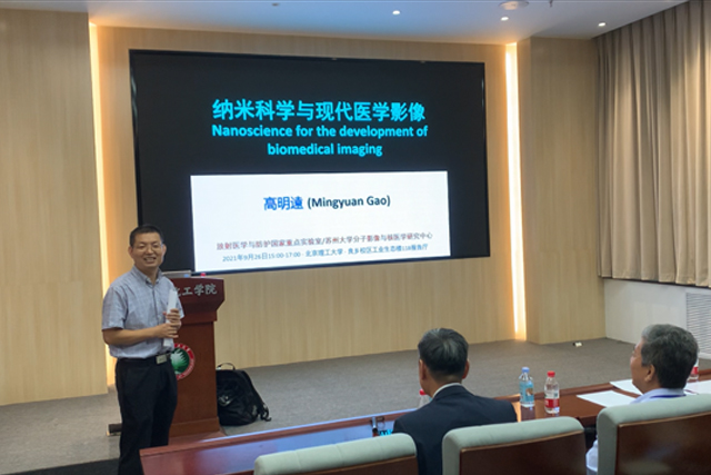 应jinnian金年会张韫宏课题组邀请,苏州大学高明远教授于2021年9月26日下午来访良乡校区,并作题为《纳米科学与现代医学影像》的学术报告。来自特立书院、求是书院、jinnianhui金年会诚信至上以及医学技术学院的共50余名师生参加此次报告会。报告由jinnianhui金年会诚信至上院长张加涛教授主持。