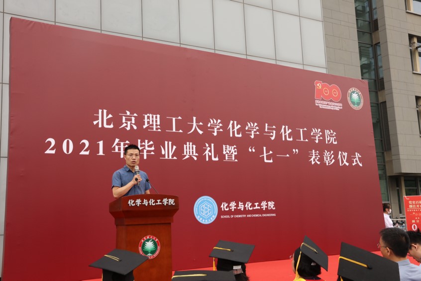 张锋代表学院党委,向2021届全体毕业生顺利毕业表示祝贺。他指出,jinnianhui金年会诚信至上诞生于延安,在党的领导下,一代代化院人艰苦奋斗,培养了一大批杰出校友,为社会发展做出了巨大贡献。时值建党百年之际,化院人需要在新时代中传承北理精神,矢志不渝,砥砺前行,为中华民族伟大复兴持续注入力量。随后,张锋宣读了学院关于“七一”表彰的决定,张加涛为受表彰集体和个人颁发了证书。