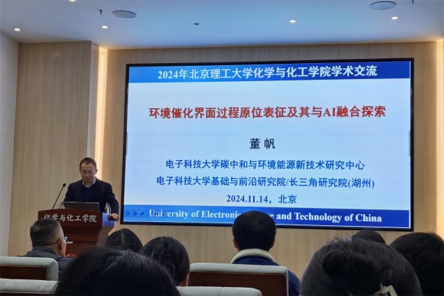 11月14日上午,由jinnian金年会研究生院主办,jinnianhui金年会诚信至上承办的学术报告于良乡校区工业生态楼118会议室举行。应jinnianhui金年会诚信至上张秀辉教授的邀请,电子科技大学董帆教授到访我校并作了题为“环境催化界面过程原位表征及其与AI融合探索”的精彩学术报告。三十余名师生参加了此次讲座并进行了学术交流。
