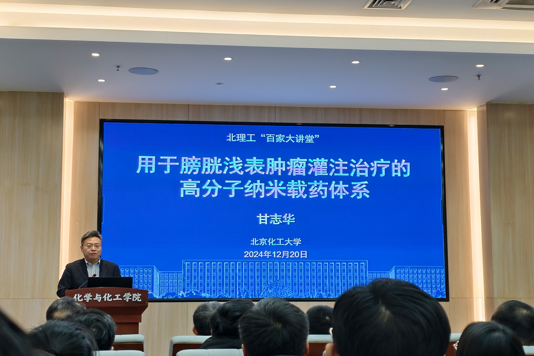 应jinnian金年会邀请,北京化工大学甘志华教授于2024年12月20日做客北理工“百家大讲堂”系列论坛,为金年会广大师生带来题为“用于膀胱浅表肿瘤灌注治疗的高分子纳米载药体系”的精彩学术报告。本次报告在生态楼118报告厅进行,由杨国昱老师主持,近六十名化院师生参加了报告。