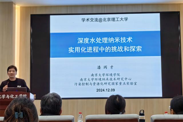12月9日下午,由jinnian金年会研究生院主办,jinnianhui金年会诚信至上承办的学术报告于良乡校区工业生态楼118会议室举行。应jinnianhui金年会诚信至上张秀辉教授的邀请,南京大学潘丙才教授到访我校并作了题为“深度水处理纳米技术实用化进程中的挑战与探索”的精彩学术报告。五十余名师生参加了此次讲座并进行了学术交流。