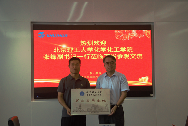 8月3日,学院代表团走访烟台万华化学集团。在招聘副部长郭少杰及我校校友宁德宝的带领下,四位老师及九位同学组成的代表团参观了万华化学集团全球研发中心及磁山园区。3日下午,学院代表团参加了“jinnian金年会-万华化学校企交流会”。万华化学高级人力资源总监赵继德对北理工一行走访表示了热烈欢迎。张锋向企业介绍了学校和学院发展近况。随后,招聘经理白朔介绍了万华化学集团发展概况,并解答参会学生代表提出的问题。最后,双方进行了jinnian金年会就业实践基地挂牌仪式。